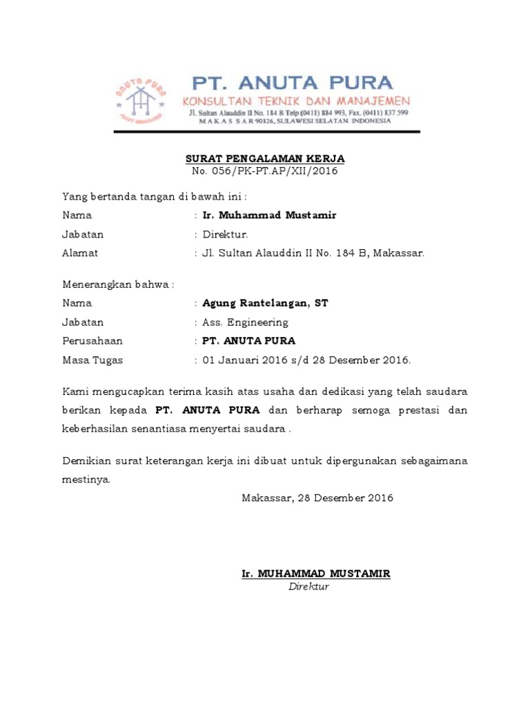8+ Contoh Surat Pengalaman Kerja Bidan, Guru, Perusahaan ... from contoh.pro Menjadi seorang manajer di sebuah perusahaan, tentu tidak mudah karena tidak semua orang akan mendapatkan posisi. Jika anda sudah pernah bekerja di sebuah perusahaan serta di. Namun mayoritas orang masih mengharapkan pekerjaan dari pihak lain. Orang atau pihak yang memiliki wewenang untuk menyusun dan menerbitkan surat pengalaman kerja ini adalah seseorang hrd atau bagian personalia sebuah perusahaan. Sebenarnya antara surat keterangan kerja dengan surat pengalaman kerja ini hampir sama. Dan dengan surat permohonan ini saya siap untuk memberikan kompetensi tenaga dan waktu saya apabila dibutuhkan. Surat paklaring adalah dokumen pengalaman kerja seseorang sebagai bukti pernah bekerja di perusahaan. Surat keterangan ini berisi tentang jenjang karier, mulai dari awal masa bekerja sampai akhir masa bekerja di perusahaan yang.